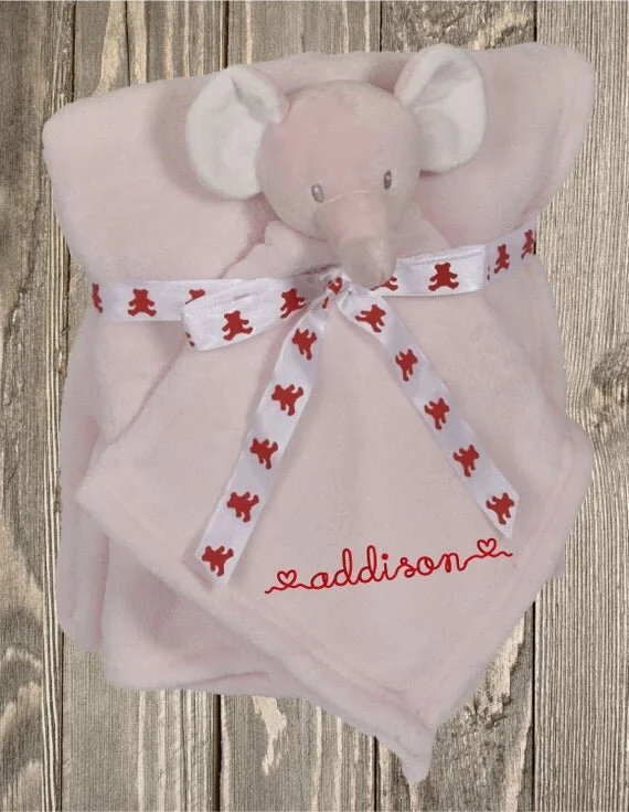 A Dog S Life Embroidery Pink Elephant Personalized Baby Blanket Elephant Snuggle Baby Shower Gift Baby Shower Blanket Set Plush Monkey Plush Personalization
